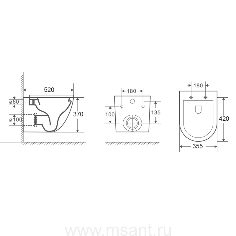 Унитаз подвесной Azario Fora 520х350х370 безободковый с сидением микролифт