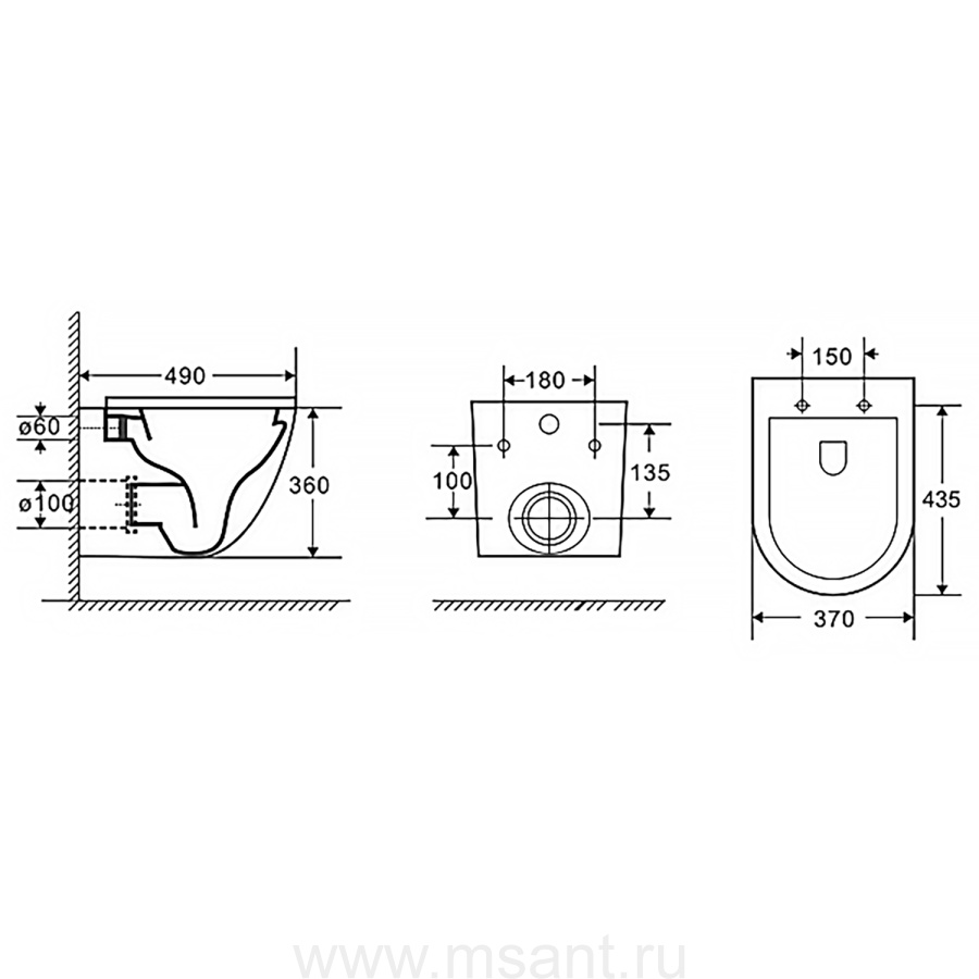 Унитаз подвесной Azario Grado 490х370х360 безободковый с быстросъемным сиденьем микролифт