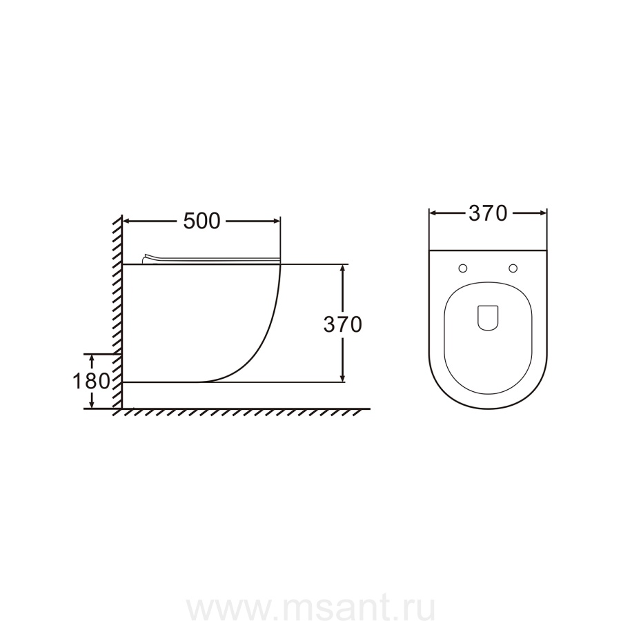 Унитаз подвесной AZARIO MORANO 370х370х500 безободковый, в комплекте с сиденьем микролифт, белый