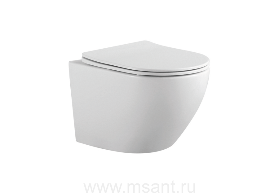 Унитаз подвесной безободковый AQUATEK ЕВРОПА AQ1901-00 525*360*320 мм, горизонтальный выпуск, тонкое сиденье с механизмом плавного закрывания, крепеж
