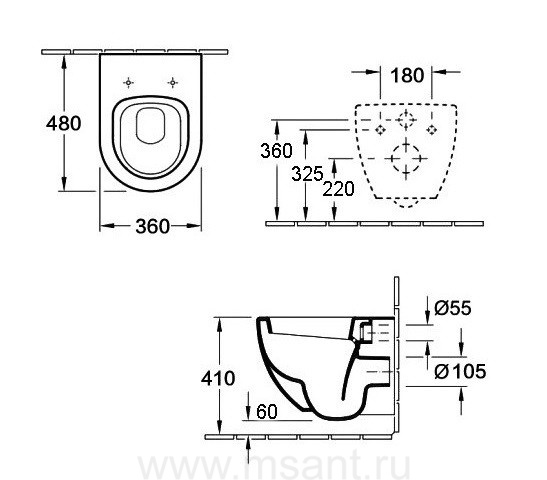Унитаз подвесной CLAVEL (Matt White). Размер: 480x360x355.
