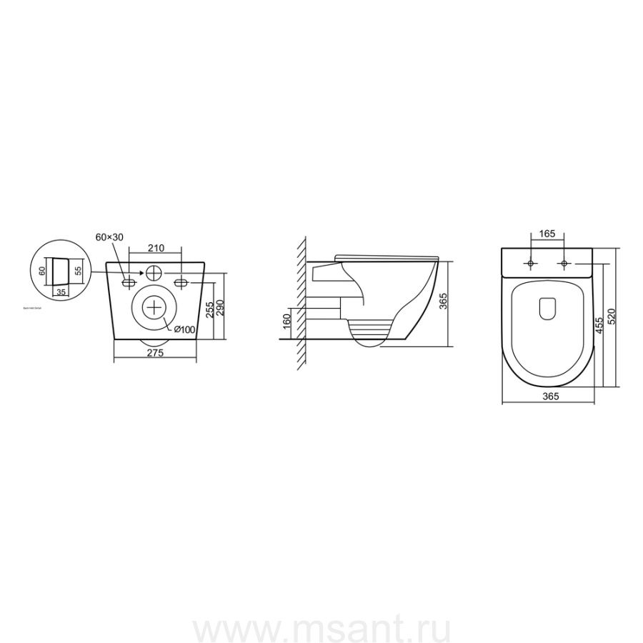 Унитаз подвесной Triton-Pro Verso VO-1832, сиденье, фурнитура
