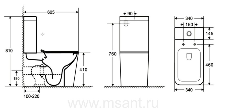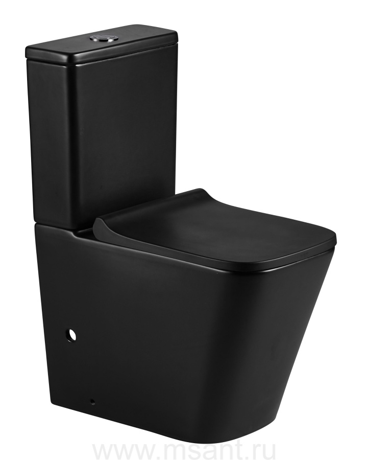 Унитаз-компакт напольный Azario Quadro безободковый с сидением микролифт и арматурой, чёрный матовый (AZ-2175-MB)