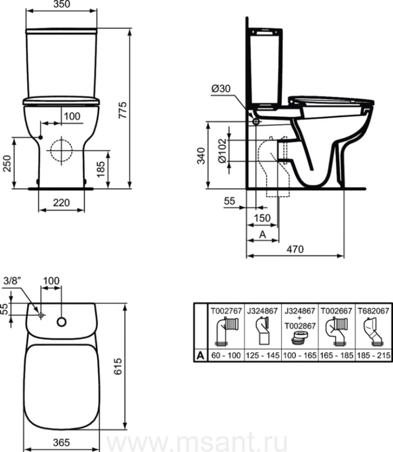 Унитаз-компакт Ideal Standard Esedra T282001 пристенный