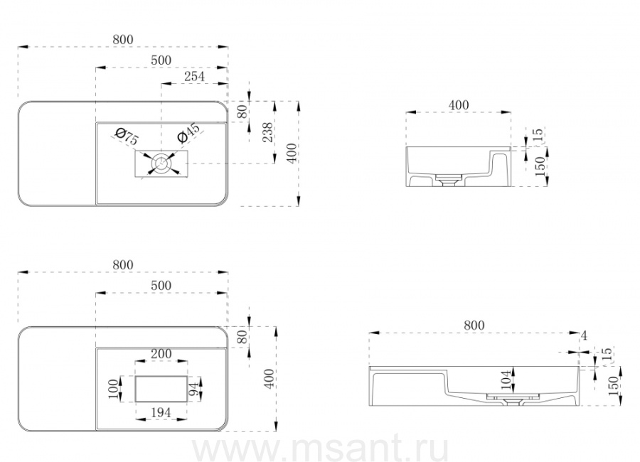 Раковина подвесная ABBER Stein AS2627-0.8 белая матовая