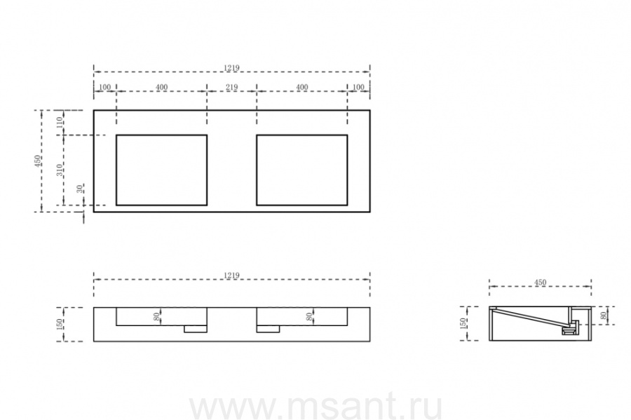 Раковина подвесная ABBER Stein AS2643-1.2 двойная, белая матовая