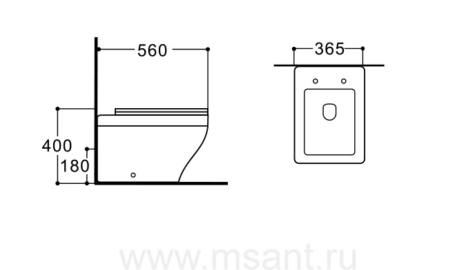 Унитаз напольный приставной безободковый AQUATEK АМАДЕО AQ1964-00 560*365*400 мм, горизонтальный выпуск, тонкое сиденье с механизмом плавного закрывания, крепеж