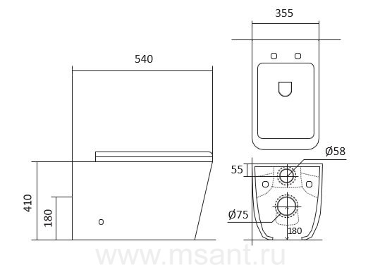 Унитаз напольный приставной безободковый AQUATEK ЛИБРА New AQ1908N-00 540*355*410 мм, горизонтальный выпуск, тонкое сиденье с механизмом плавного закрывания, крепеж