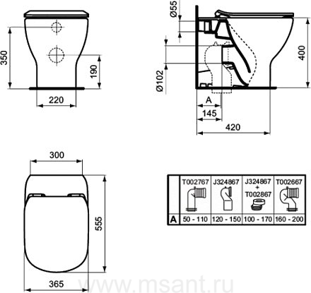 Унитаз приставной Ideal Standard Tesi AquaBlade T007701 AquaBlade®