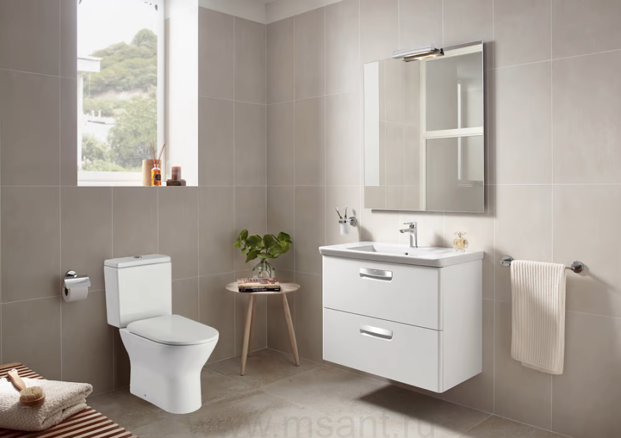 Унитаз-компакт Roca напольный с вертикальным выпуском, сиденье с крышкой для унитаза тонкое c механизмом "мягкое закрывание", белый