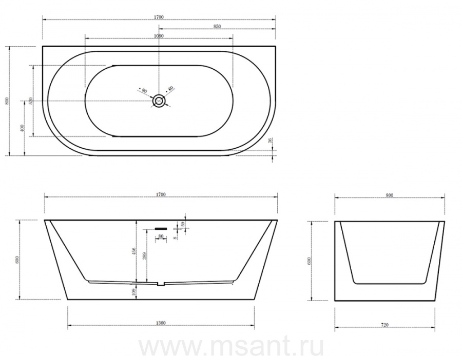 Акриловая ванна ABBER AB9216-1.7MB черная матовая