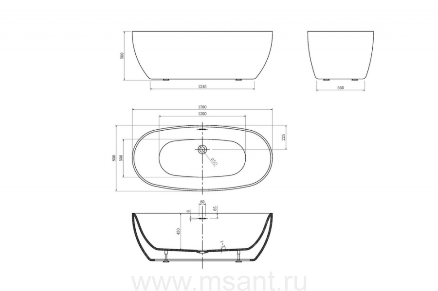 Акриловая ванна ABBER AB9265-1.7 белая