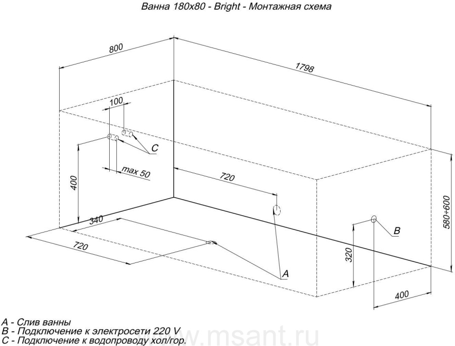 Акриловая ванна Aquanet Bright 180x80 (с каркасом)