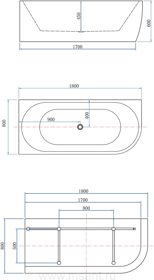 Акриловая ванна Aquanet Family Elegant A 180x80 3805N Matt Finish (панель Black matte)
