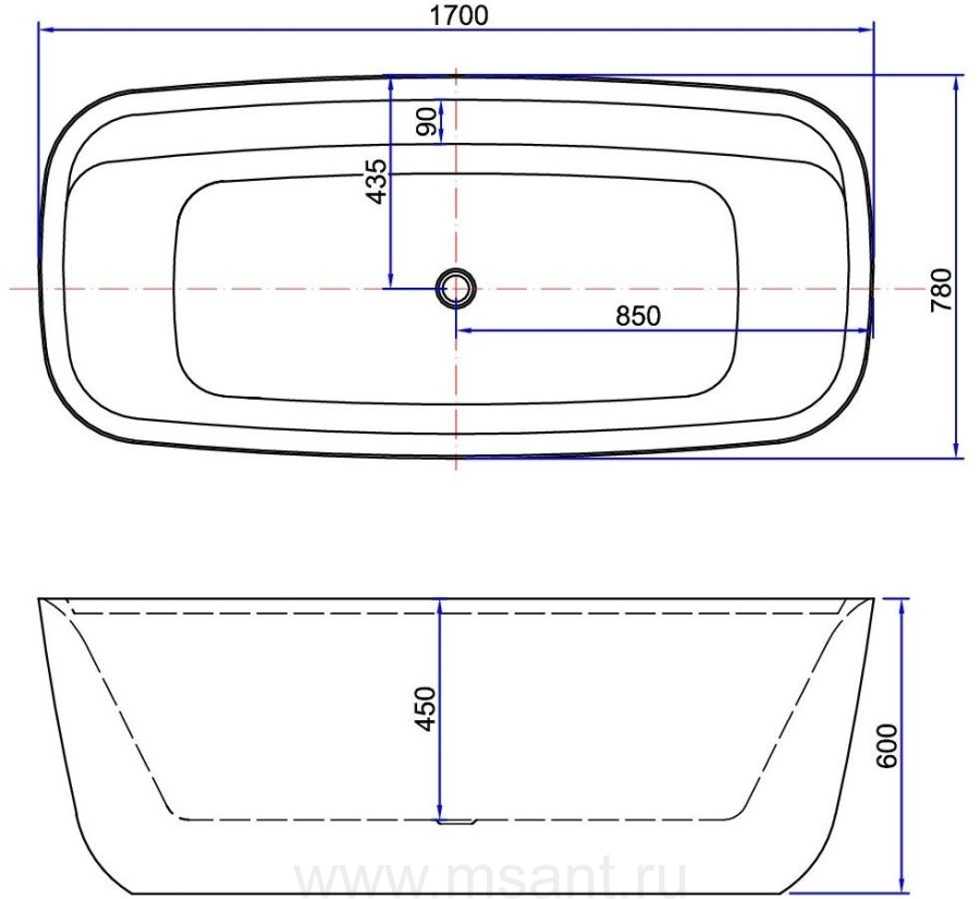 Акриловая ванна Aquanet Family Fine 170x78 95778 Gloss Finish