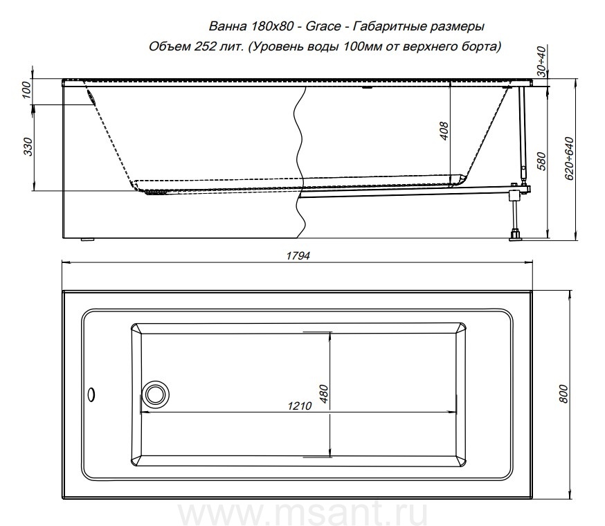 Акриловая ванна Aquanet Grace 180x80 (с каркасом)