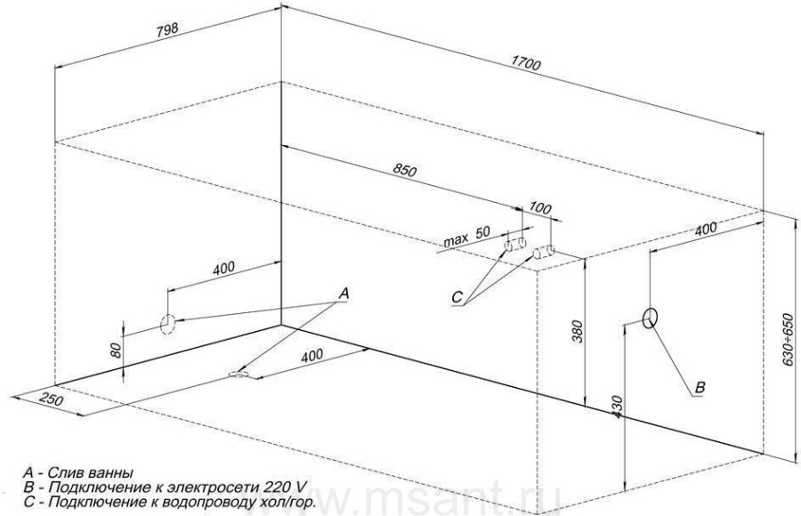 Фронтальная панель для ванны Aquanet Cariba/Grenada/Corsica 170