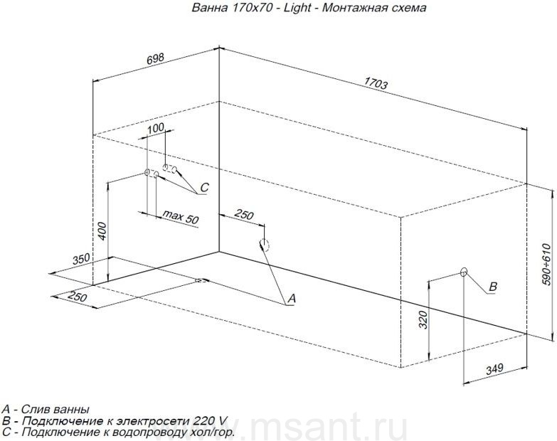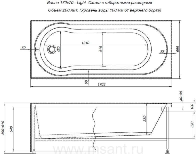 Акриловая ванна Aquanet Light 170x70 (с каркасом)