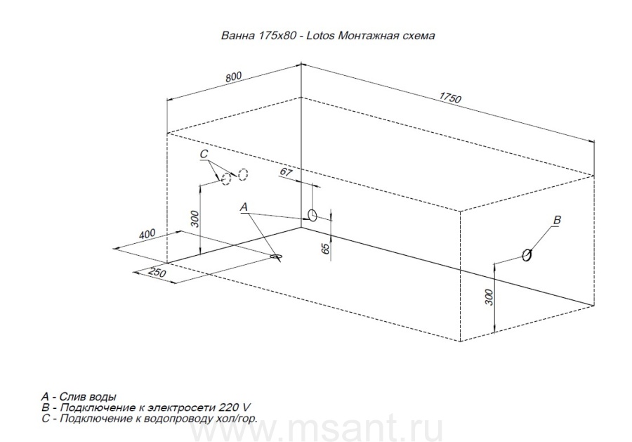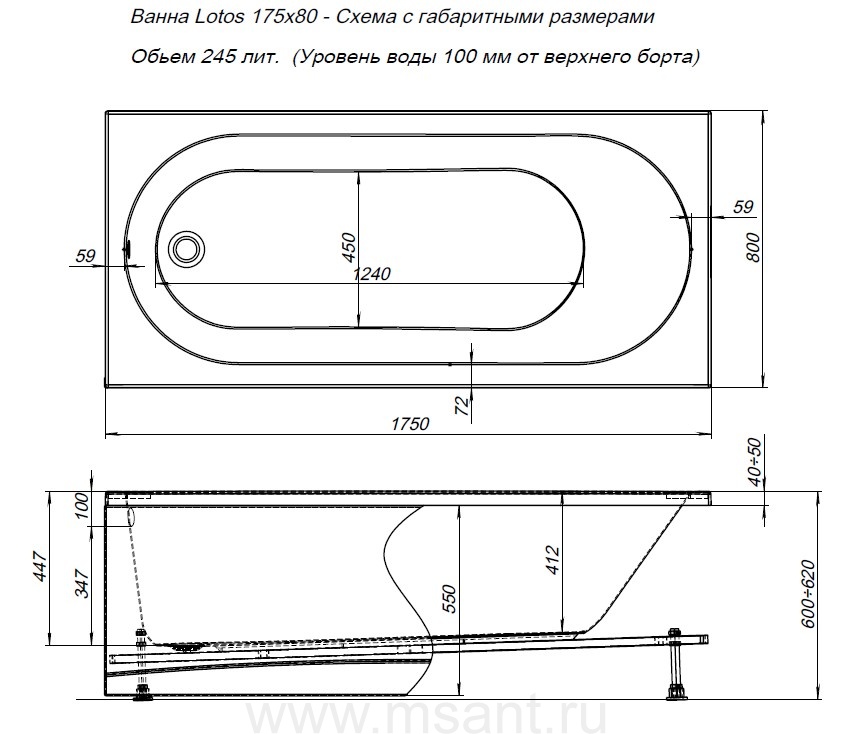 Акриловая ванна Aquanet Lotos 175x80 (с каркасом)