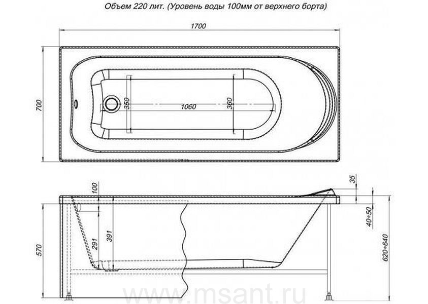 Акриловая ванна Aquanet Nord NEW 170x70 (с каркасом)