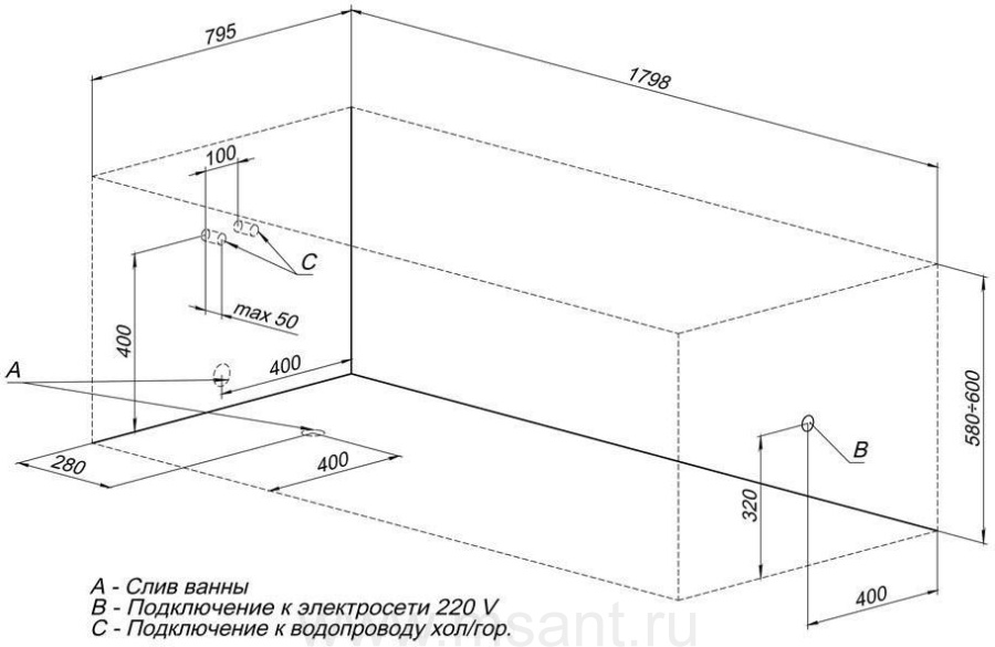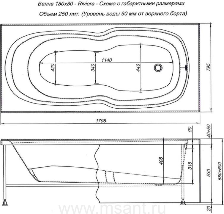Акриловая ванна Aquanet Riviera 180x80 (с каркасом)
