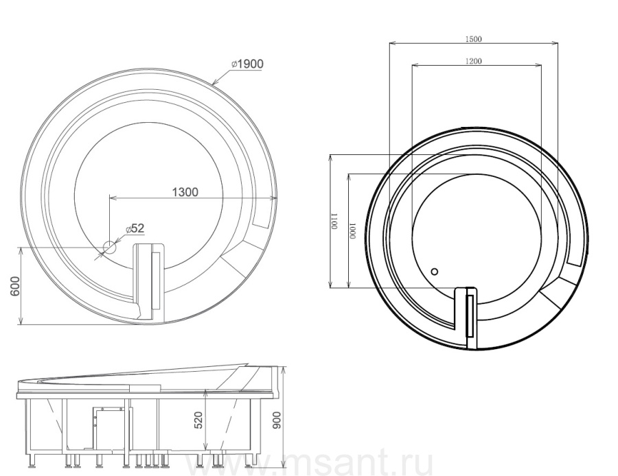 Акриловая ванна Gemy G9090 O