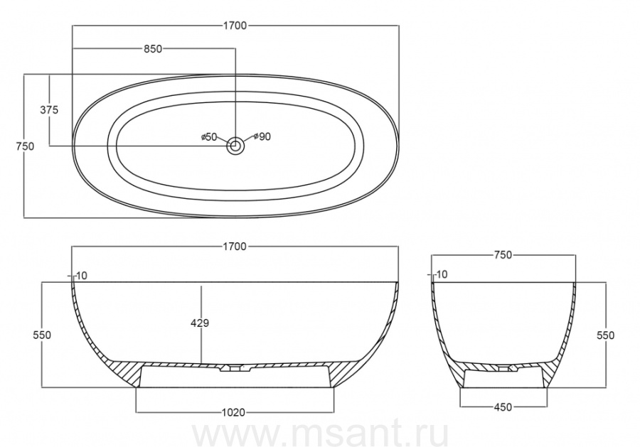 Прозрачная ванна ABBER Kristall AT9703Onyx черная