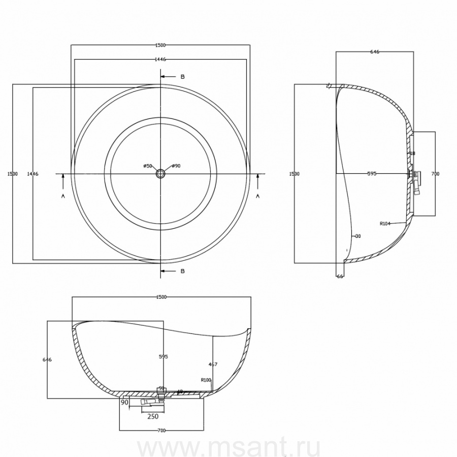 Прозрачная ванна ABBER Kristall AT9705Onyx черная