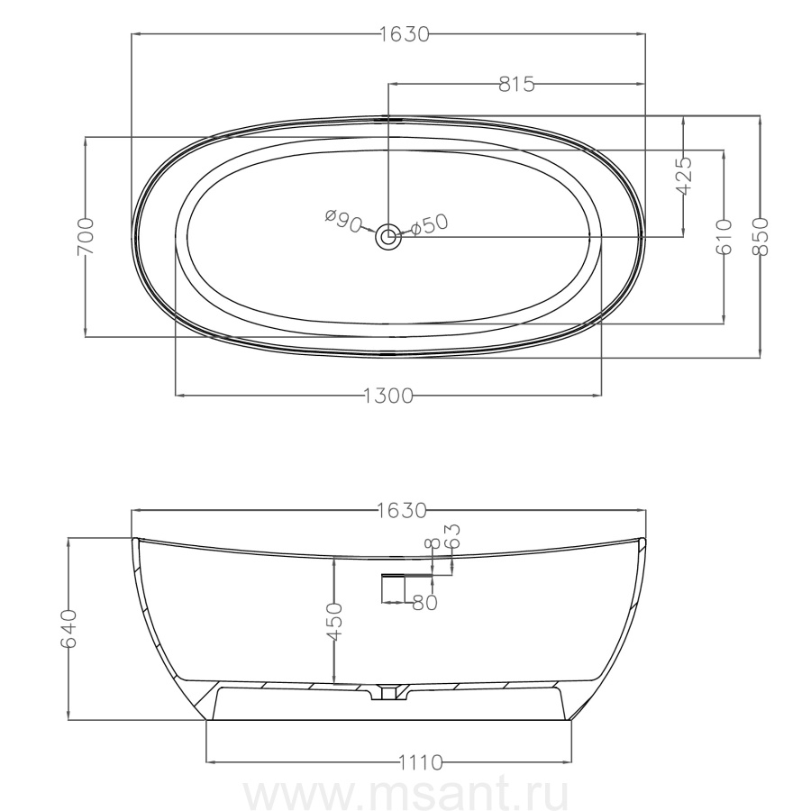 Ванна из искусственного камня ABBER Stein AS9615-1.6 белая матовая