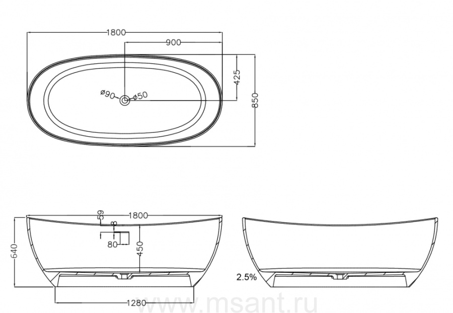 Ванна из искусственного камня ABBER Stein AS9615-1.8 белая матовая