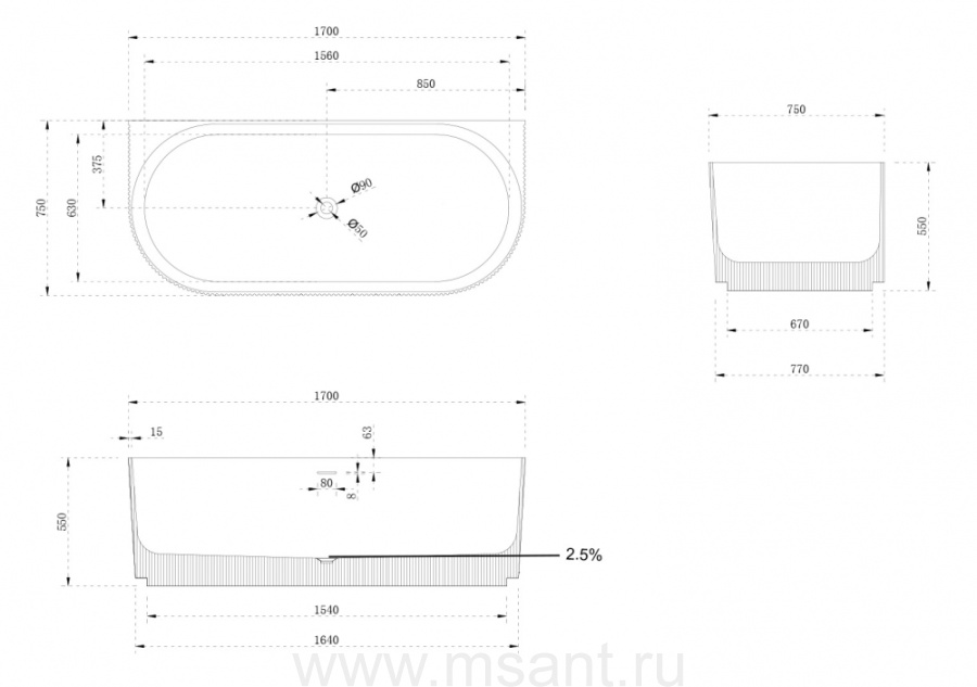 Ванна из искусственного камня ABBER Stein AS9630 белая матовая