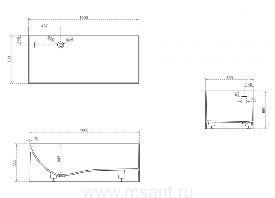 Ванна из искусственного камня ABBER Stein AS9640-1.6 белая матовая