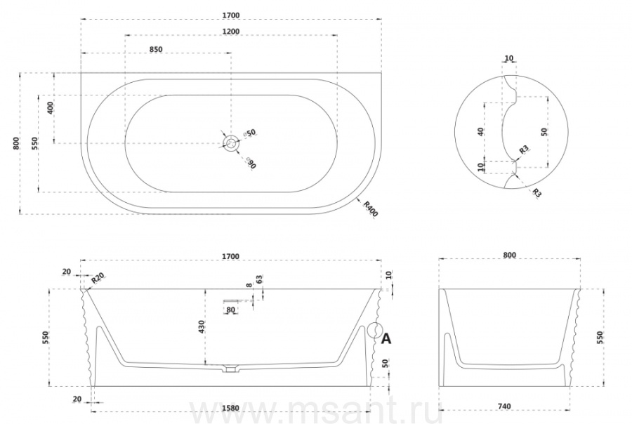 Ванна из искусственного камня ABBER Stein AS9652 белая матовая