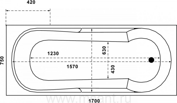 Акриловая ванна BAS Энтони 170x75 на каркасе