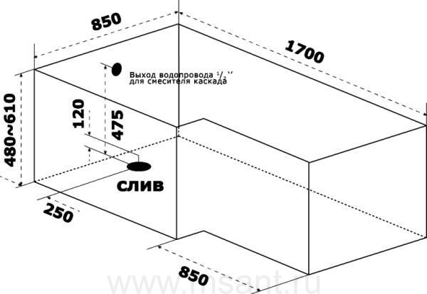 Акриловая ванна BAS Эсте 170x85 L на каркасе
