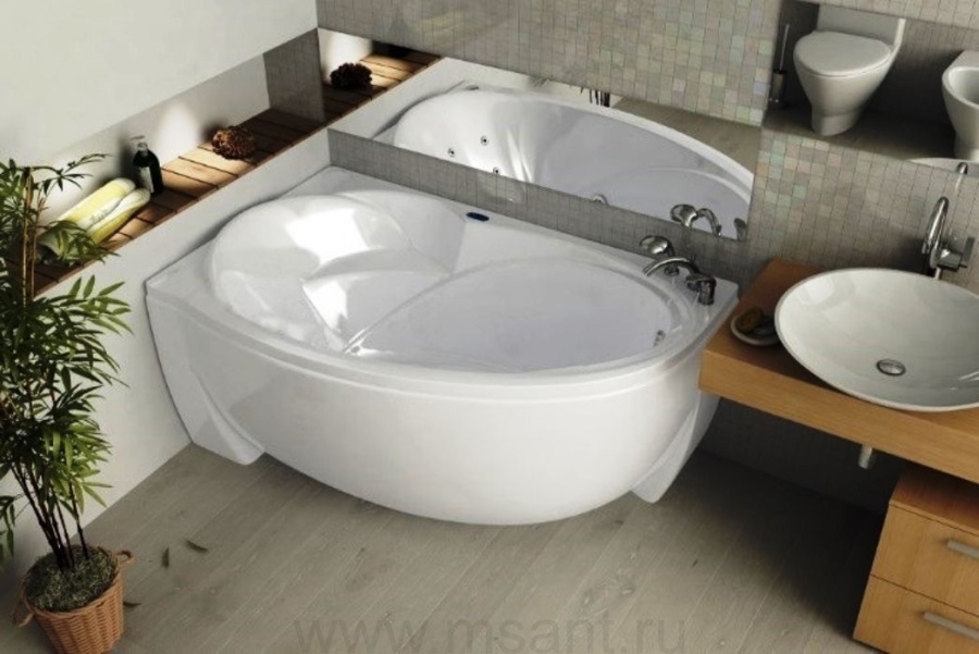 Акриловая ванна Aquatek Бетта 160х97 L, с каркасом, фронтальным экраном и сливом-переливом