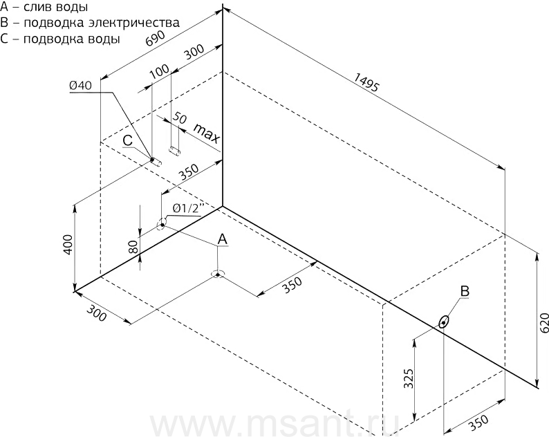 Каркас для ванны Aquanet West 150x70 сварной