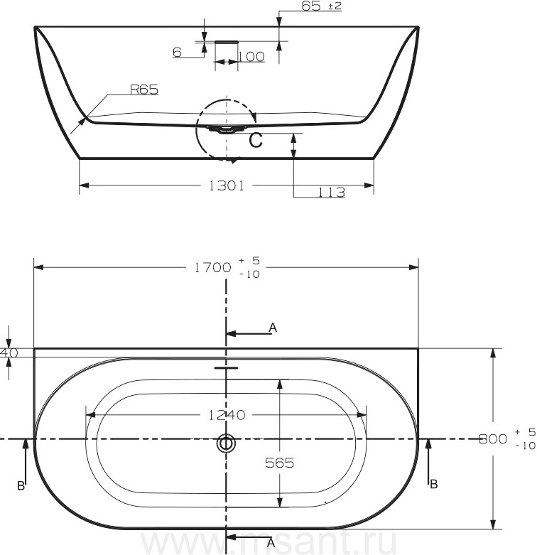 Акриловая ванна Art&Max Ovale AM-OVA-1700-800