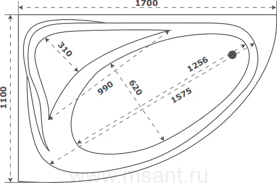 Акриловая ванна BAS Милан 170x110 L на каркасе