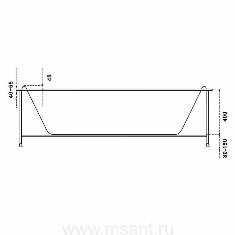 Акриловая ванна BAS Ньюлав 180x90 на каркасе
