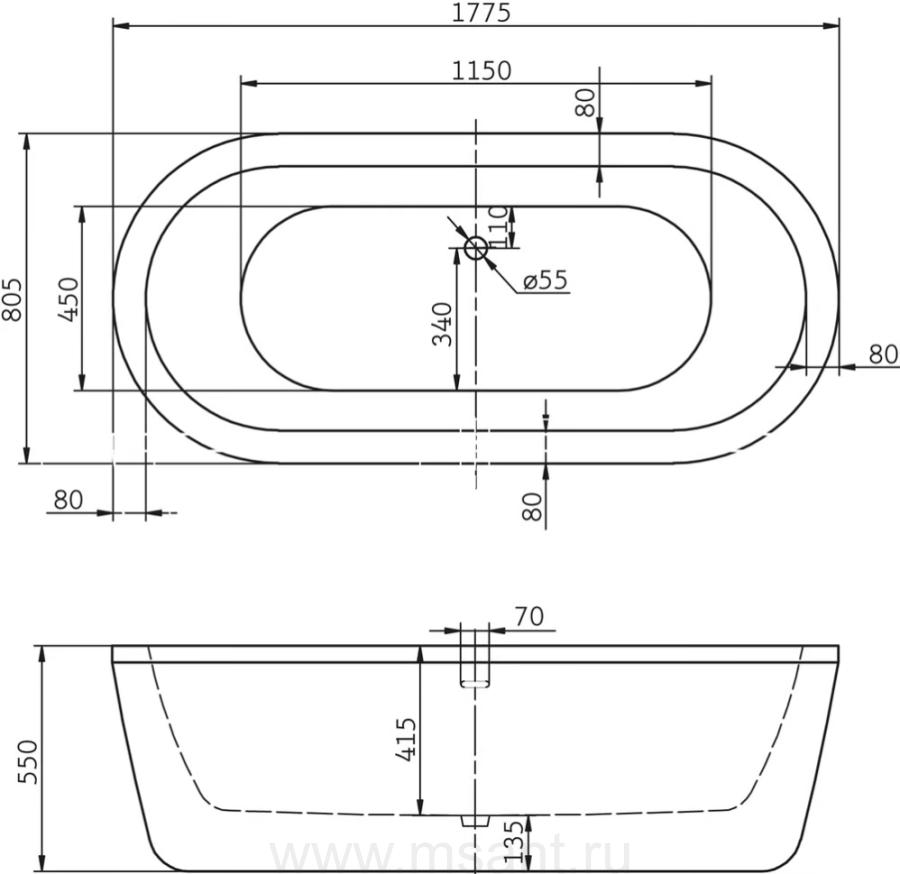 Слив-перелив BelBagno BB39-OVF-BRN бронза