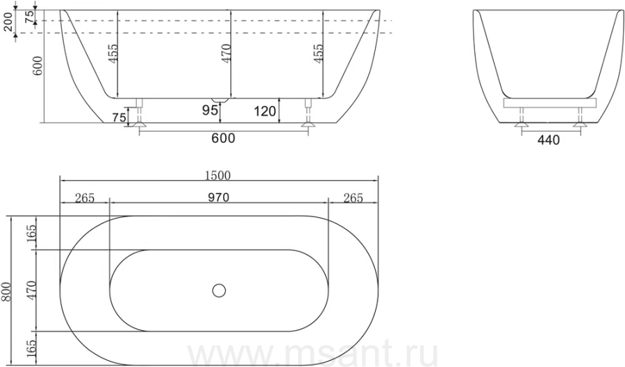 Акриловая ванна BelBagno BB70-1500-800 150x80