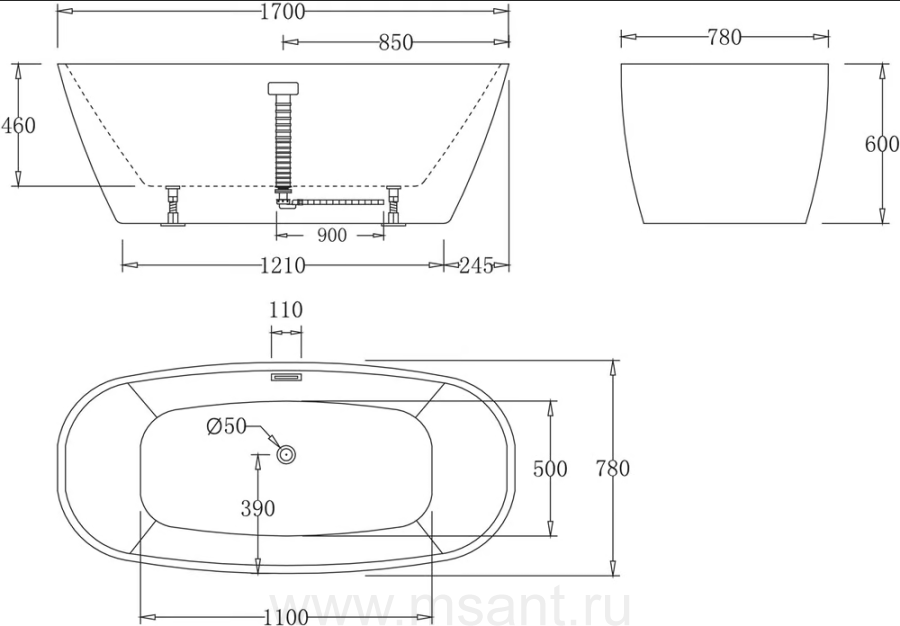 Смеситель BelBagno Uno FMT CRM для ванны с душем, С ВНУТРЕННЕЙ ЧАСТЬЮ
