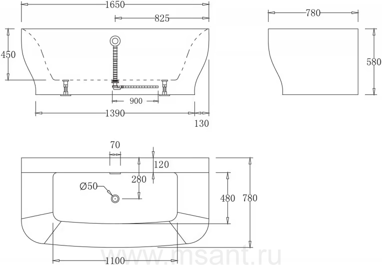 Акриловая ванна BelBagno BB74-NERO 165x80