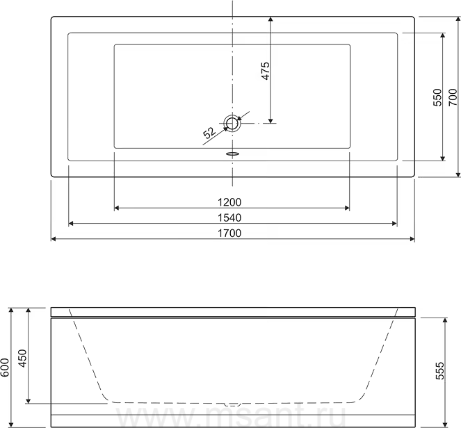 Акриловая ванна Cezares Plane 170x70
