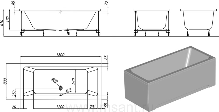 Каркас для ванны Kolpa San Quat Tamia 170x75