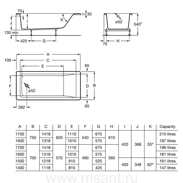 Акриловая ванна Roca Easy ZRU9302904 150x70см