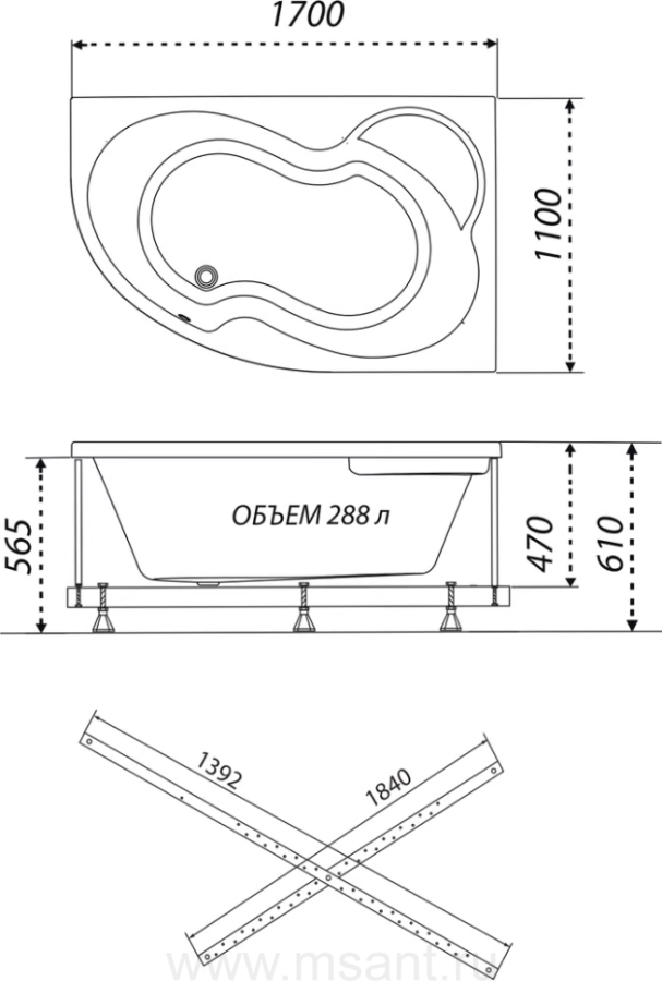 Каркас для ванны Triton 140-170х70-75 универсальный 5 опор