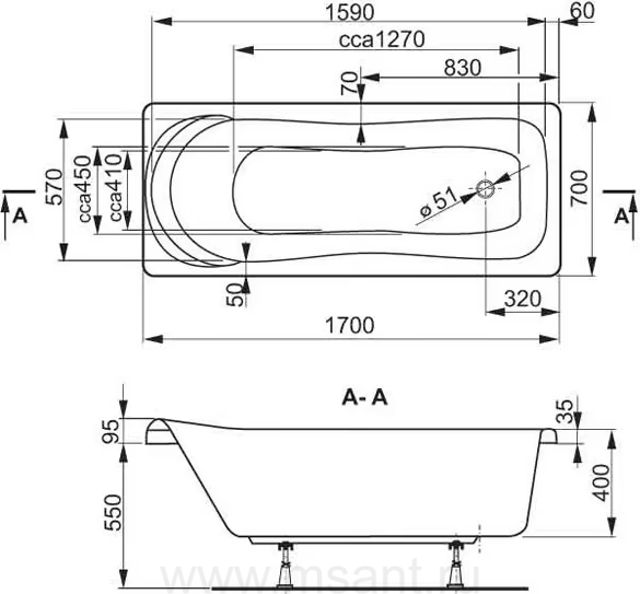Каркас для ванны Vagnerplast 170x70