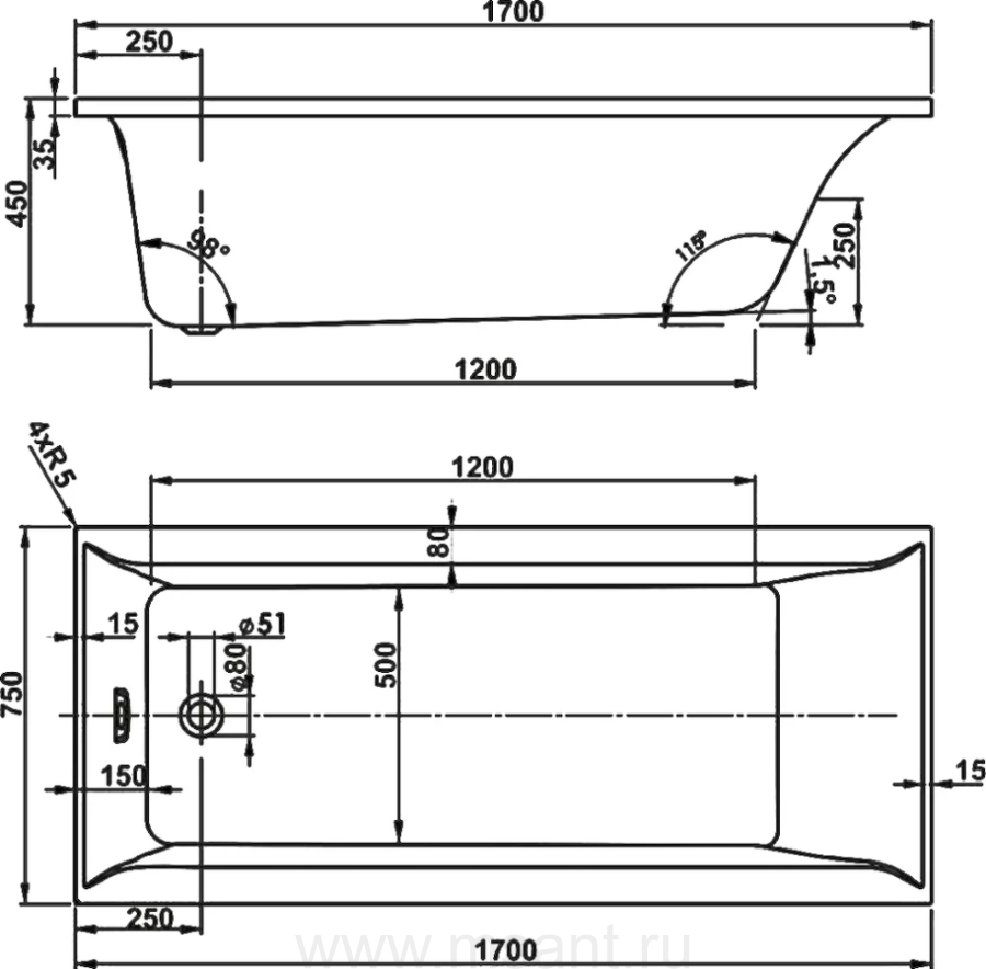 Акриловая ванна Vagnerplast Veronela 170x75 ультра белый